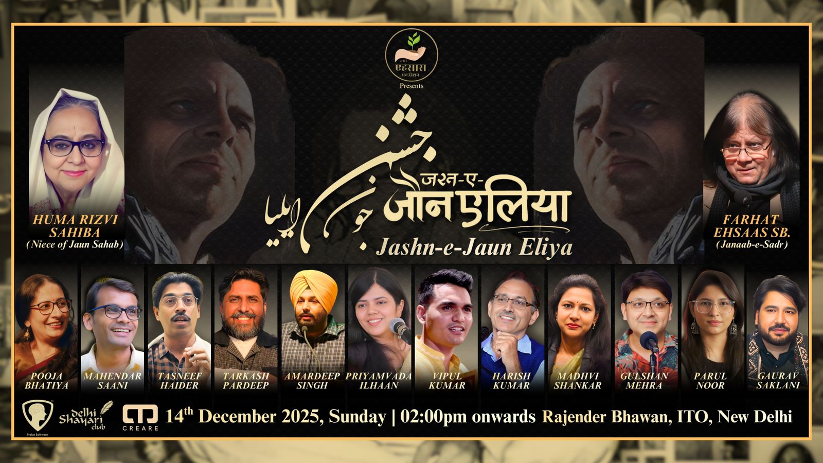 The 94th birth anniversary of legendary poet Jaun Elia was celebrated with great literary enthusiasm through a grand Mushaira and Shayari evening organized by Naya Ehsaas Foundation at Rajendra Bhawan, New Delhi, on 14 December 2025. The event brought together renowned poet and shayar Farhat Ehsaas, along with many popular poets, writers, and shayars from different parts of the country, who gathered to pay a heartfelt tribute to Jaun Elia’s timeless poetry and intellectual legacy. The Mushaira echoed with profound verses, philosophical thoughts, and emotional expressions, reflecting Jaun Elia’s rebellious spirit and deep literary vision. The memorable evening reaffirmed his lasting influence on Urdu literature and celebrated his 94th birth anniversary in a truly meaningful and dignified manner.