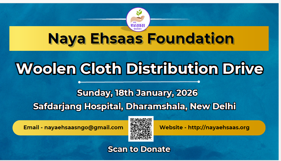 Naya Ehsaas Foundation organized a woolen clothes distribution drive on 18 January 2026 at Safdarganj Hospital Dharamashala, New Delhi to support needy patients and their attendants during the winter season. Warm clothes were distributed to underprivileged people to provide relief from the cold and spread comfort, care, and humanity. The initiative reflected the foundation’s commitment to serving society and standing with those in need.