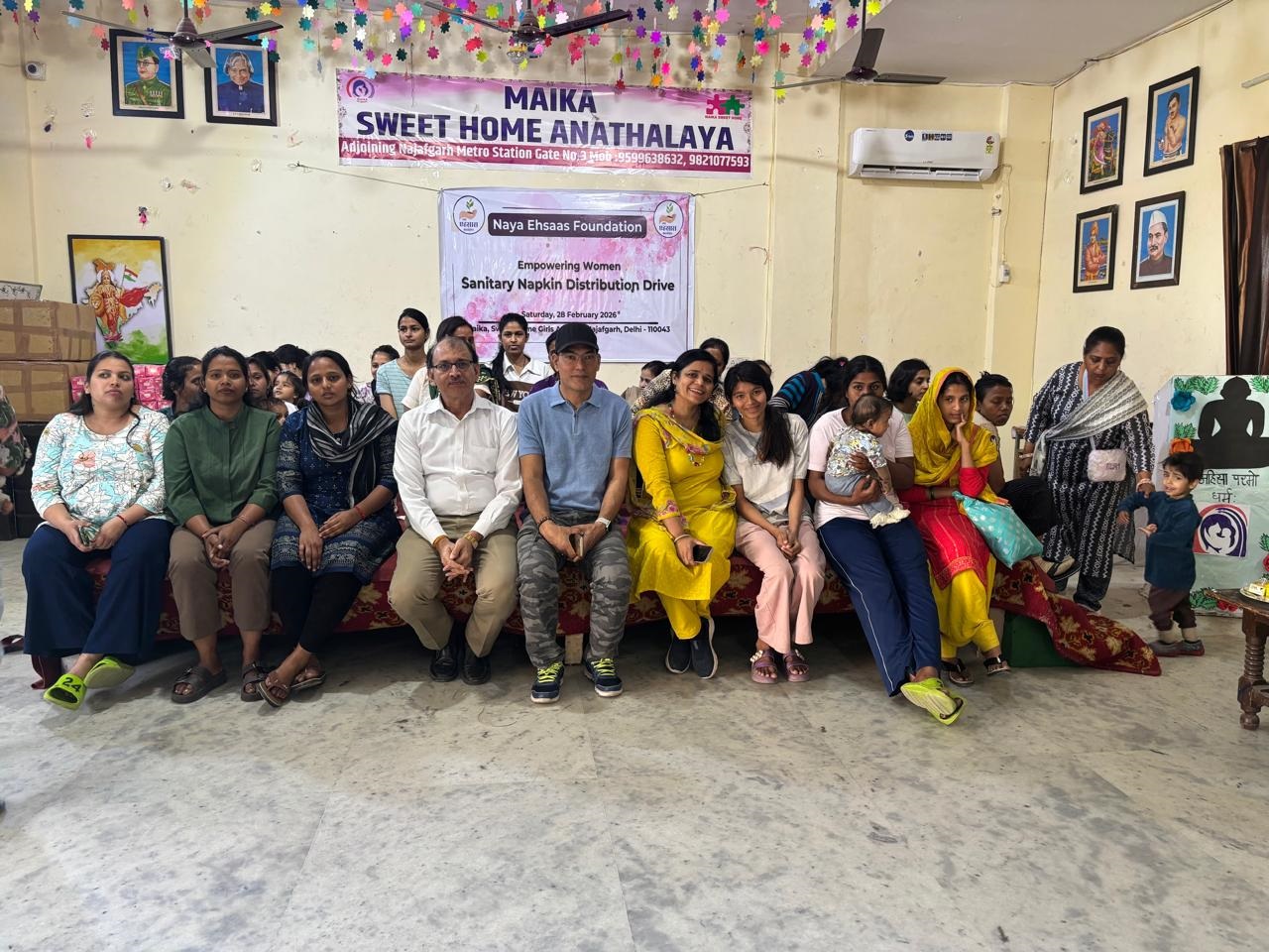 Sanitary napkin distribution was conducted on 28-01-2026 at Maika Sweet Home, Najafgarh, New Delhi, to promote hygiene and provide essential support to girls and women.
